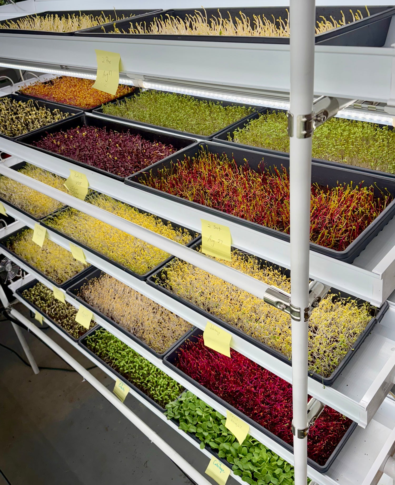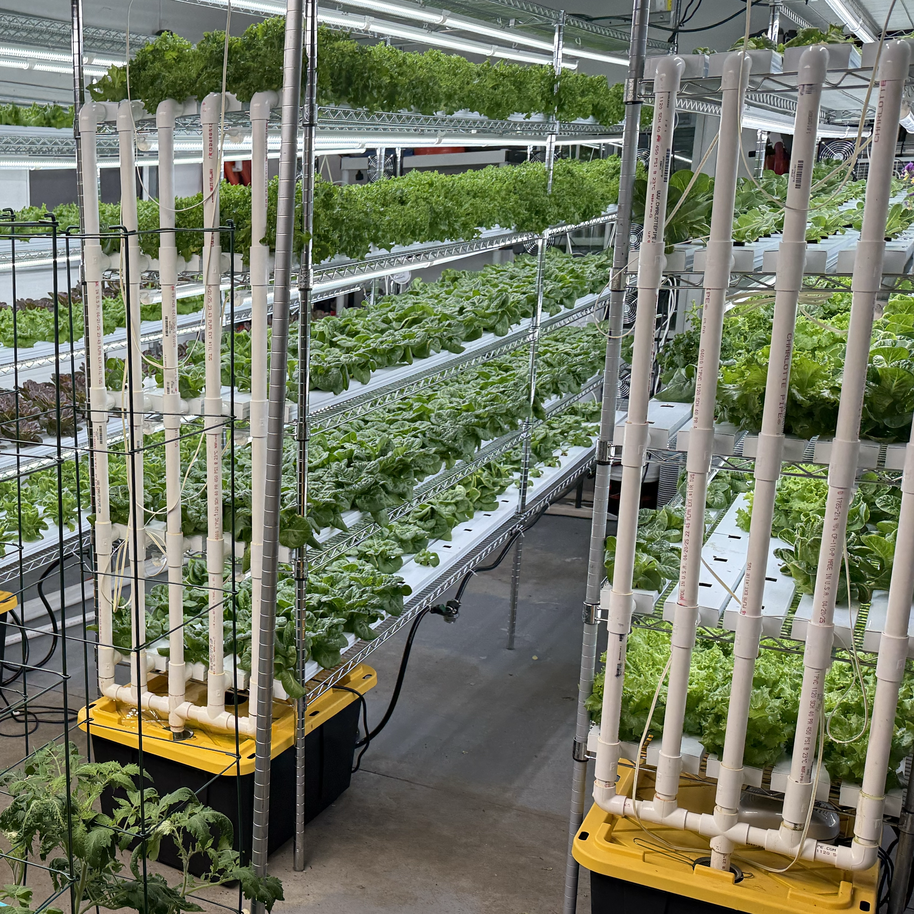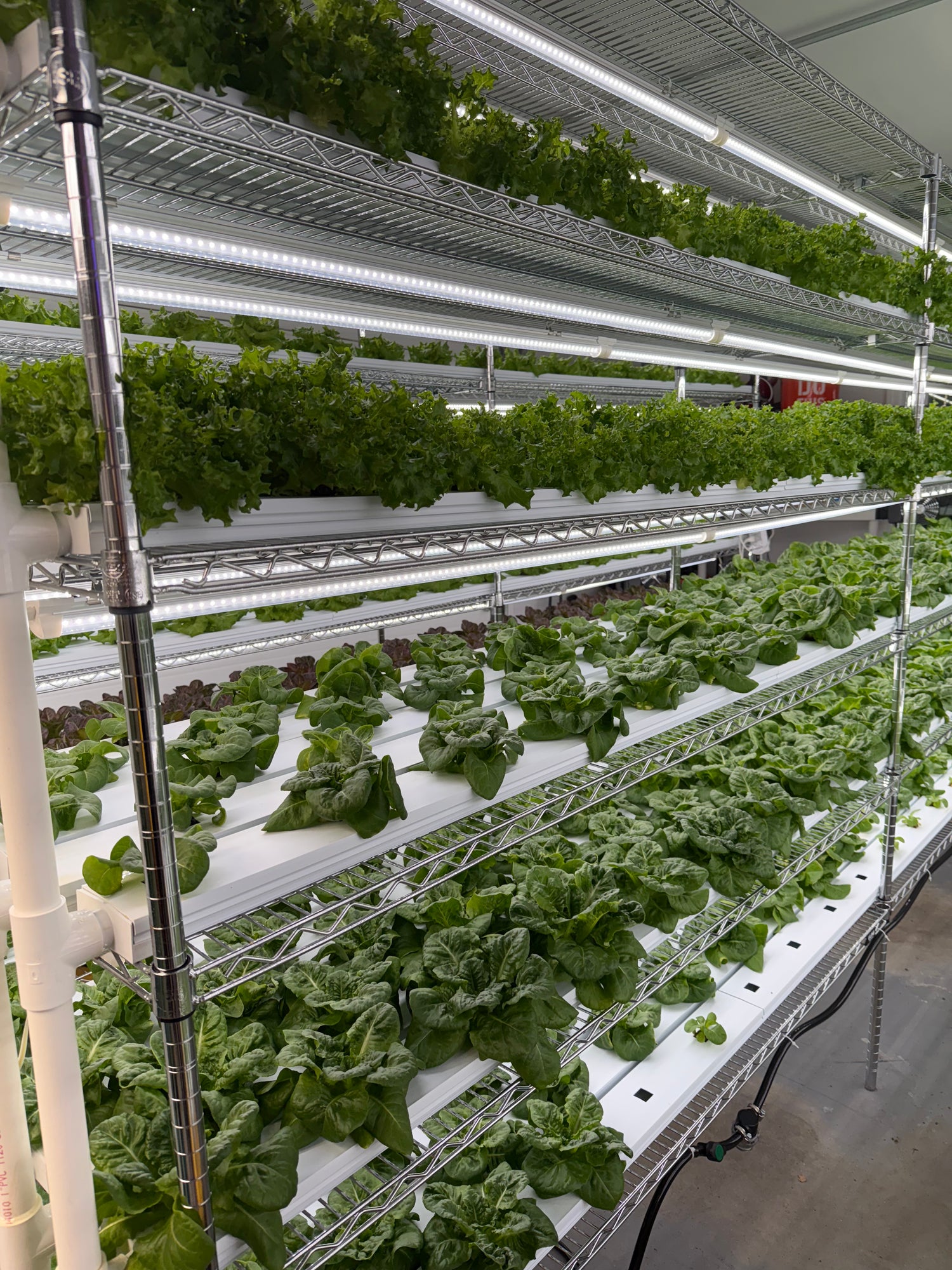 Our hydroponic farm grows crops in a controlled environment without soil, using water, fans blowing cool air, spectrum grow lighting and plant specific recipes of natural and organic nutrients. This makes it highly efficient—plants grow faster, use 90% less water, and have higher yields in considerably less space. Many equate this as a “spa day for plants”. You can grow food year-round, even in places where farming isn’t usually possible, like urban and suburban areas impacted by climate challenges, land supply, and economic viability. It is important to note that there has been more awareness about food safety and quality in recent years, which has helped educate consumers and spark interest in healthier food options. Our systems mimic optimal plant growing environments to produce consistent, nutrient rich harvests regardless of the season. The ability to grow in urban and suburban areas enhances freshness and market access.